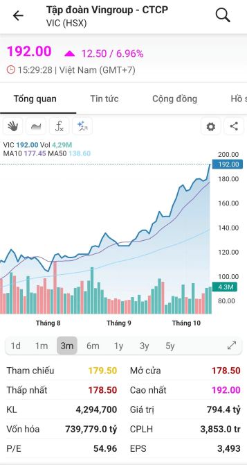 Theo ghi nhận tham chiếu, giá cổ phiếu VIC sáng ngày 12/10 vẫn đang ở mức 192.000 đồng/cổ phiếu.