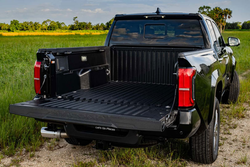 Đặc biệt, Tacoma Limited còn được trang bị loa di động JBL Flex, có thể tháo rời và sử dụng như loa Bluetooth độc lập. Khi gắn trên bảng điều khiển, thiết bị này hoạt động như loa trung tâm và tự động sạc. Xe hỗ trợ hệ thống chìa khóa thông minh, khởi động bằng nút bấm và tùy chọn khóa kỹ thuật số kết nối điện thoại thông minh thông qua Remote Connect.