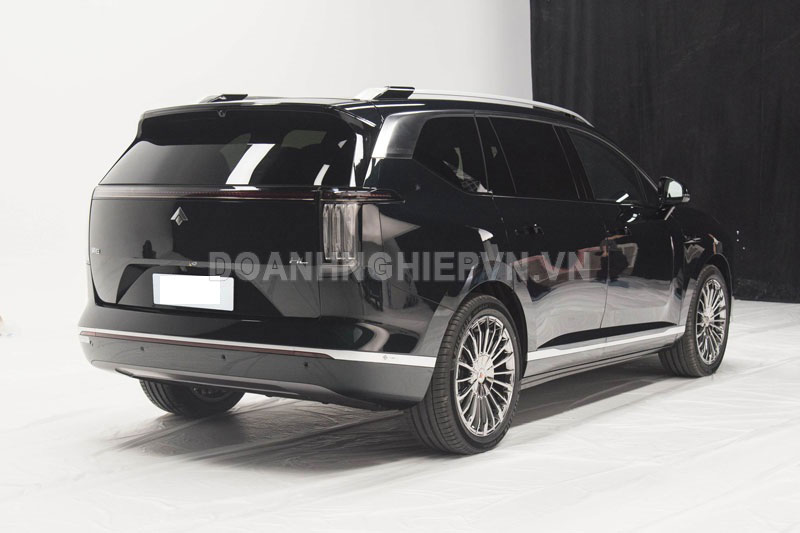 Đi theo concept “du thuyền trên cạn”, Aion Hyper HL có thiết kế ngoại hình đúng chuẩn hiện đại và sang trọng. Phần đầu xe gây ấn tượng với lưới tản nhiệt kín hoàn toàn kết hợp cùng đèn pha tách rời, vừa cá tính vừa tăng khả năng nhận diện. Phía sau xe được trang bị cụm đèn hậu kéo dài xuyên suốt, đi kèm thiết kế đèn dọc hai bên – một chi tiết rất "trendy" hiện nay, giúp tổng thể xe vừa có chiều sâu, vừa nổi bật khi di chuyển. Xe có 4 tùy chọn màu ngoại thất gồm xanh hải quân, xám đá băng, xanh biển sâu và đen bóng đêm.