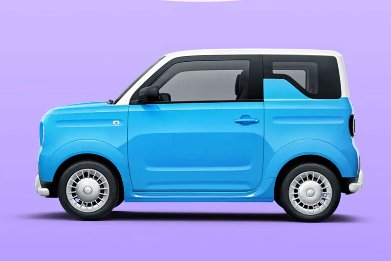 Cổng sạc được đặt ngay chính giữa phía trước, tiện lợi cho việc sạc pin ở nhiều điều kiện khác nhau. Từ bên hông, xe giữ nguyên kiểu dáng vuông vức, có tùy chọn hai tông màu hoặc một tông màu, đi kèm bộ mâm hợp kim 14 inch với thiết kế Vibrant Pinwheel trẻ trung.