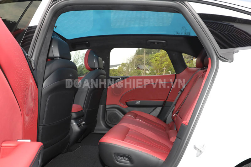 Ghế trước của Zeekr 007 GT có tùy chọn điều chỉnh điện 14 hướng, sưởi – làm mát – massage, trong khi hàng ghế sau có giá đỡ máy tính bảng. Đặc biệt, 007 GT còn có cửa sổ trời toàn cảnh chống tia UV 99,99% với 10 cấp độ điều chỉnh, và tủ lạnh mini 10,2 lít ẩn dưới sàn cốp xe.