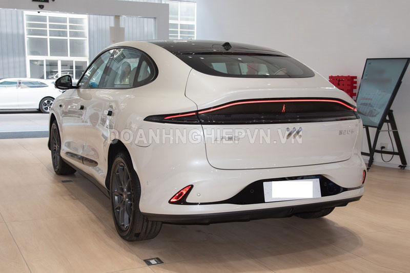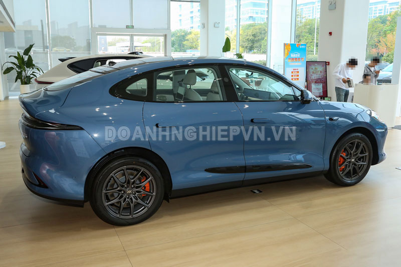 Nhìn từ bên hông, Zhiji LS6 Theater Edition có dáng vẻ tương tự một chiếc SUV coupe với phần đuôi xe kéo dài hợp lý, tạo phong cách thể thao và năng động. Xe sử dụng thiết kế bánh 5 chấu kép sơn đen mờ, kết hợp cùng kẹp phanh màu đỏ cam. Phía sau, thiết kế cánh đuôi hướng lên giúp tăng tính khí động học và mang nét đặc trưng của nhiều mẫu xe thể thao. Đèn hậu dạng xuyên suốt có đường nét chiếu sáng tinh tế, tạo nên dấu ấn riêng. Kích thước tổng thể của xe lần lượt là 4.910 x 1.988 x 1.669 mm, chiều dài cơ sở 2.960 mm.
