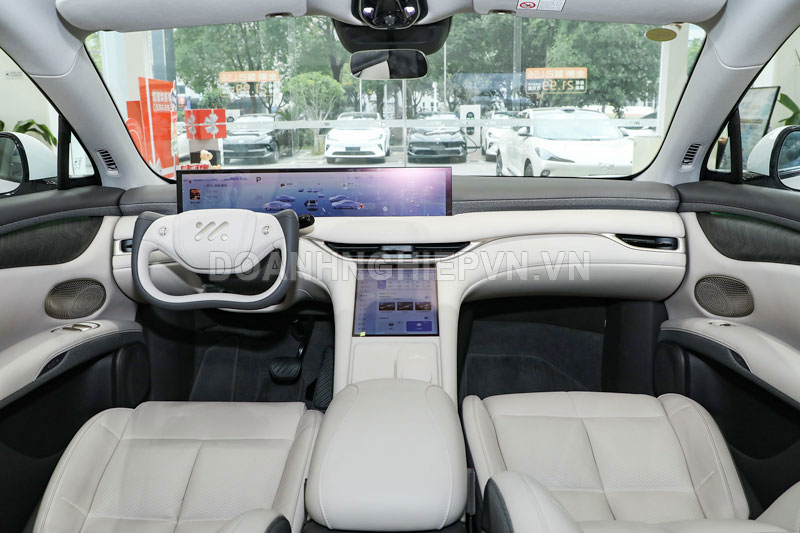 Bên trong khoang lái, Saic Zhiji LS6 Theater Edition tiếp tục sử dụng ngôn ngữ thiết kế đặc trưng của Zhiji với bảng điều khiển trung tâm được trang bị loạt màn hình hiện đại. Xe có màn hình buồng lái kỹ thuật số full-frame 26,3 inch dành cho tài xế, màn hình giải trí độc lập 15,5 inch cho phụ lái, màn hình cảm ứng trung tâm 10,5 inch và màn hình thông minh IM Max 17,3 inch dành cho hàng ghế sau. Vô-lăng bán chấu mang đến cảm giác công nghệ cao, trong khi chip xử lý Snapdragon 8295 từ Qualcomm giúp tối ưu hiệu suất hoạt động.