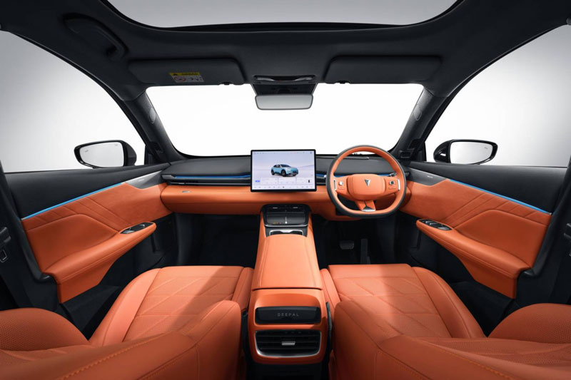 Deepal S05 sở hữu hệ thống treo trước McPherson và treo sau đa liên kết, bộ mâm hợp kim 18-20 inch, mái kính toàn cảnh, tay nắm cửa ẩn và nội thất hiện đại. Xe trang bị vô lăng hình chữ D, màn hình 15,4 inch xoay theo hướng người lái, ghế Zero Gravity có chức năng thông gió, điều chỉnh điện và nhớ vị trí. Ngoài ra, xe còn có hộp giữ lạnh 13L, điều hòa 3 vùng, hệ thống âm thanh 14 loa, sạc không dây 50W, đèn viền nội thất 64 màu và camera 360° với tính năng xem xuyên gầm xe.