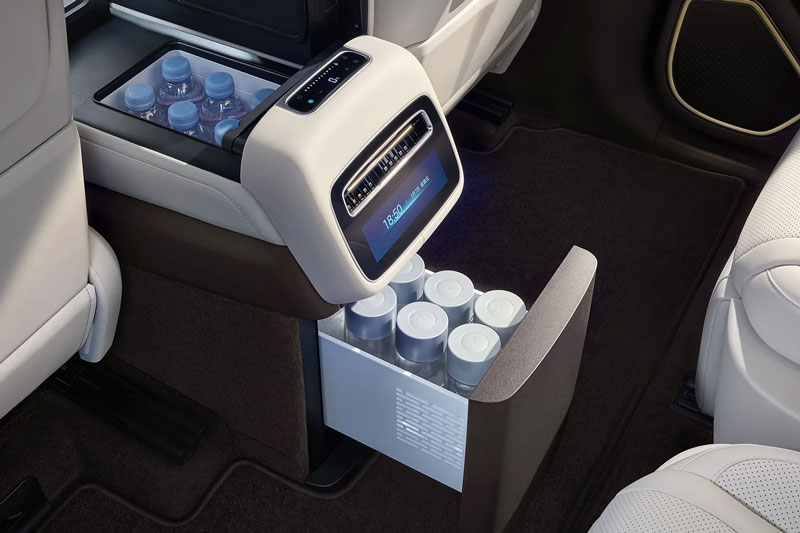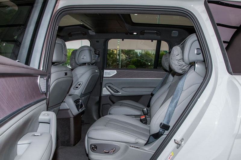 Nội thất được bố trí 6 chỗ ngồi dạng 2+2+2. Ghế trước và ghế thứ hai tích hợp đầy đủ tính năng sưởi, thông gió và massage. Hàng ghế thứ hai còn có thể di chuyển ngang, đi kèm bàn gập nhỏ, sạc không dây kép 50W, màn hình 17,3 inch gắn trần và tủ lạnh mini. Hàng ghế thứ ba có thể chỉnh điện và sưởi, giúp tối ưu trải nghiệm tiện nghi cho toàn bộ hành khách.