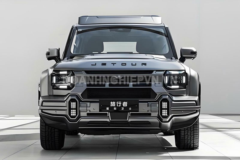 Nhìn từ phía trước, Jetour Traveler Star Guardian có sự lột xác đầy ấn tượng với lưới tản nhiệt và cản xe được thiết kế lại, kết hợp cùng logo thương hiệu màu khói và hệ thống đèn pha mang phong cách cơ khí mạnh mẽ. Tổng thể ngoại thất xe mang dáng vẻ của một "chiến binh không gian" với bộ giáp dày, góc cạnh, kết hợp cùng phong cách viễn tưởng.