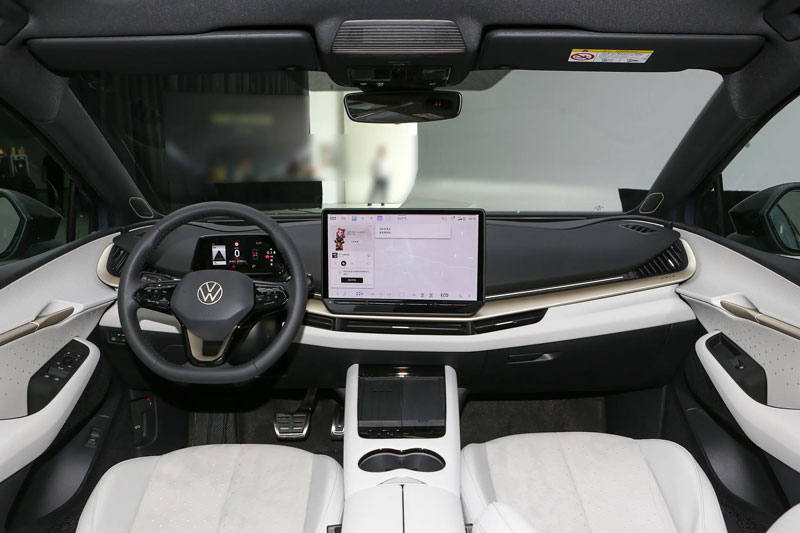 Bước vào bên trong, không gian nội thất của ID.UNYX 06 mang vibe cao cấp hơn nhờ chi tiết trang trí màu vàng ở bảng điều khiển, vô lăng, cửa gió… kết hợp cùng tông màu trắng thời thượng, tạo cảm giác trẻ trung mà vẫn sang trọng.