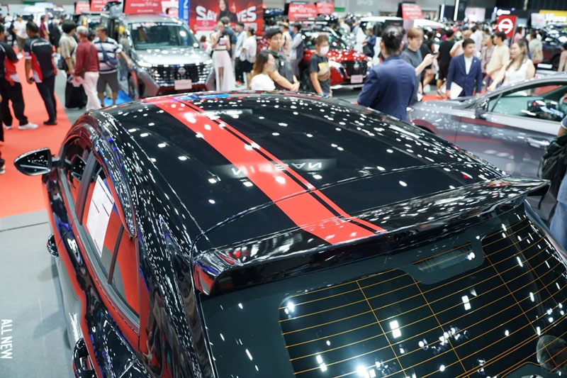 Bộ tem dán đặc trưng kéo dài từ nắp capo qua nóc xe đến phần đuôi, kết hợp cùng những đường nhấn đỏ trên khung cửa và thân dưới, cùng logo Hybrid+ màu trắng càng tôn thêm chất thể thao. Xe còn được bổ sung cánh gió gắn trên mui, tăng hiệu ứng khí động học và mang lại dáng vẻ khỏe khoắn hơn.