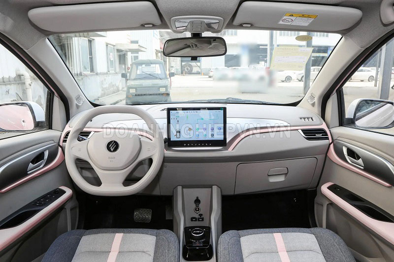 Bên trong cabin, xe được thiết kế đơn giản với màn hình thông tin giải trí trung tâm, có khả năng tích hợp vai trò hiển thị cụm đồng hồ. Một điểm nhấn thú vị là phiên bản màu hồng của xe, với nội thất đồng màu, mang lại cảm giác thời trang và khác biệt.