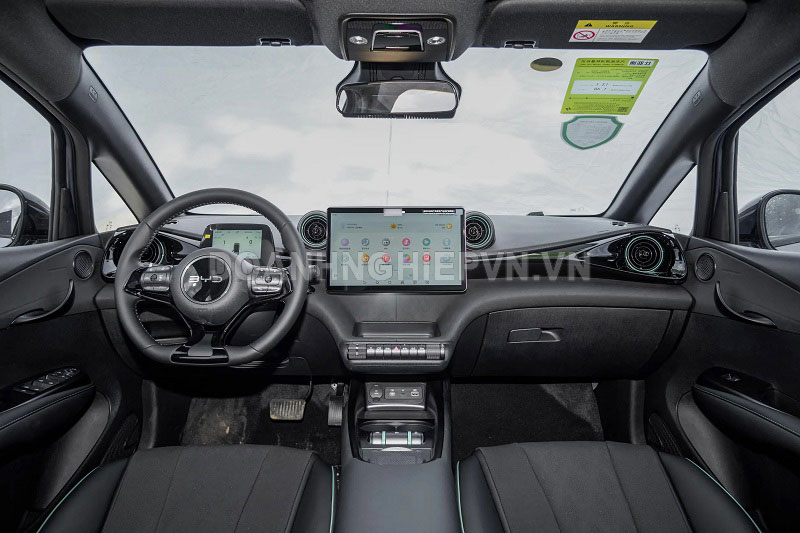 Những tính năng nổi bật trong cabin của BYD Dolphin 2025 gồm màn hình cảm ứng 12,8 inch, kết nối 5G, định vị GPS, ra lệnh bằng giọng nói thông minh. Hệ thống điều hòa tự động, lọc không khí PM2.5. Ghế bọc da nhân tạo, ghế trước chỉnh điện, có chức năng thông gió và sưởi ấm. Cửa sổ trời toàn cảnh bằng kính.