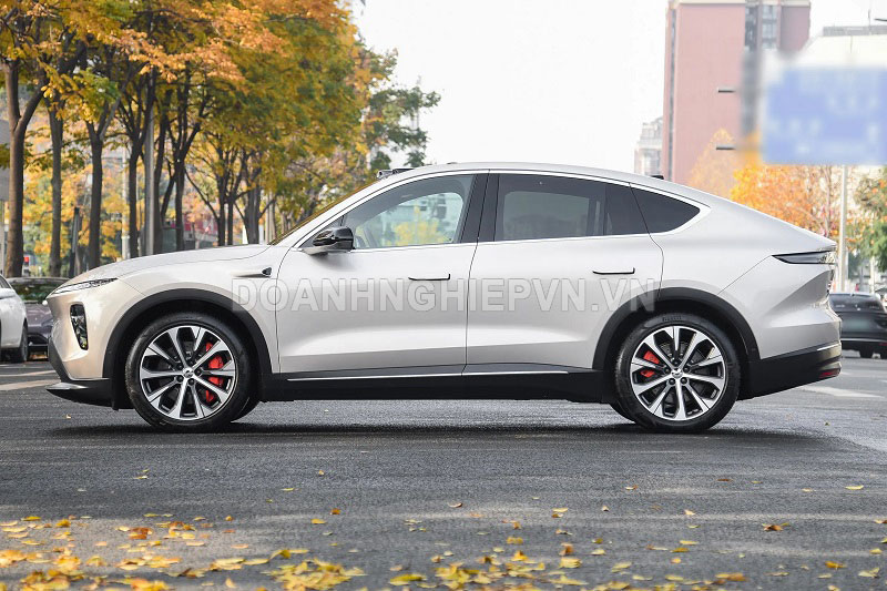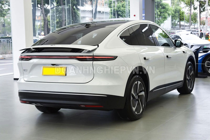 Nio EC7 sở hữu kiểu dáng coupe thanh thoát, kết hợp giữa tính thẩm mỹ hiện đại và tính khí động học vượt trội. EC7 có thiết kế khá tối giản. Cản trước, vòm hốc bánh xe, ốp gương chiếu hậu, viền cửa sổ đều được sơn đen tạo nên điểm nhấn. Tay nắm cửa dạng ẩn.