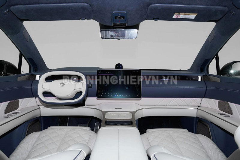 Xe có màn hình thông tin giải trí 15,6 inch định hướng ngang, bảng điều khiển 5K 48 inch và màn hình hiển thị thông tin AR toàn dải đầu tiên trong ngành. Hệ thống âm thanh Nio LYRA 8.2.4.8 với 35 loa, công suất 2.800W mang đến trải nghiệm âm thanh sống động như trong rạp chiếu phim. Ngoài ra, ET9 sở hữu cửa sổ trời toàn cảnh Sky Island, tủ lạnh mini dung tích 10 lít và hệ thống che nắng chỉnh điện.