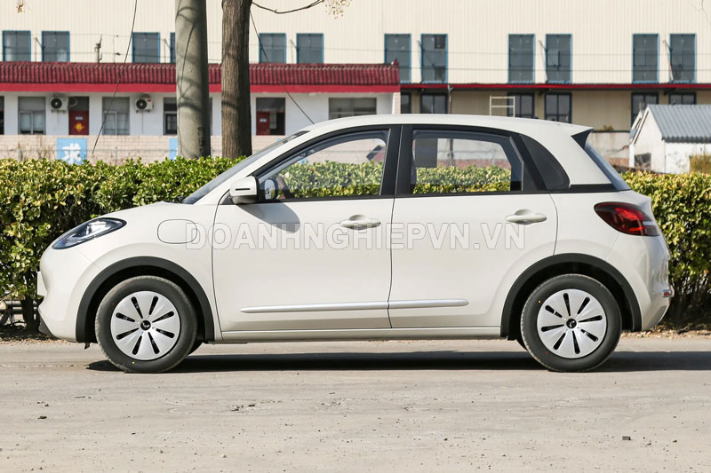 Khi nhìn ngang, thân xe mang form dáng tròn trịa, dễ thương, được phối cùng vòm bánh xe đen bản rộng tạo điểm nhấn trẻ trung. Xe sử dụng bánh 15 inch có khả năng giảm lực cản, hỗ trợ tối ưu năng lượng. Kích thước tổng thể là 3.950mm dài, 1.708mm rộng, 1.580mm cao với chiều dài cơ sở 2.560mm vừa đủ gọn để dễ xoay trở trong phố nhưng vẫn đảm bảo không gian thoải mái cho người dùng.