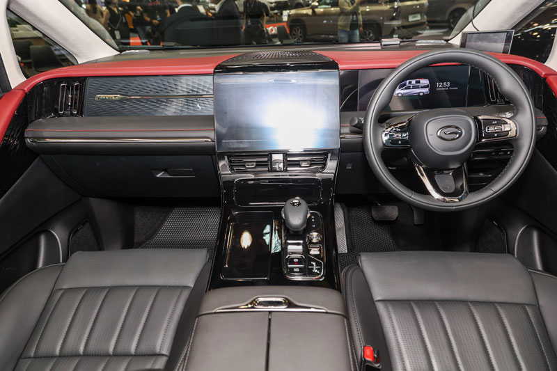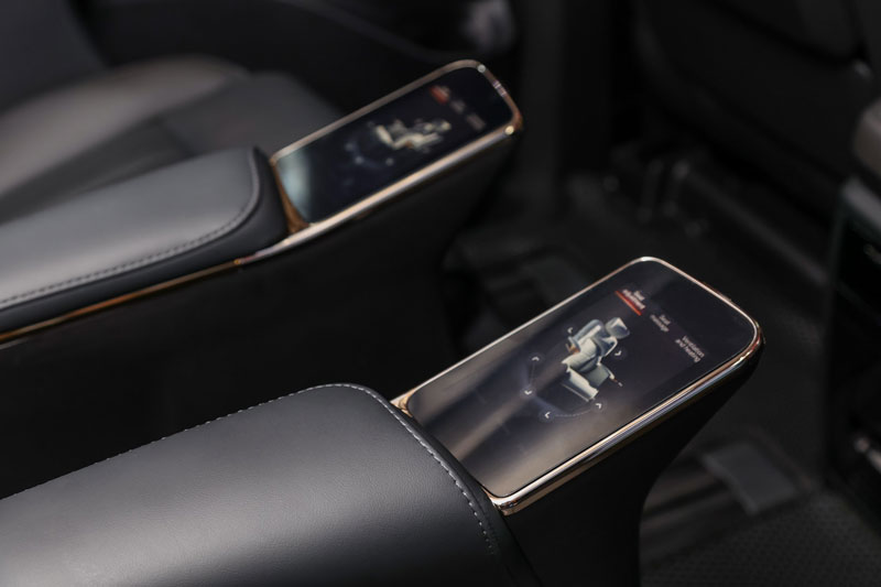 Khoang nội thất GAC M8 PHEV 2026 được hoàn thiện tinh tế, mang đậm phong cách xe sang. Xe có cấu hình 7 chỗ ngồi, với hai ghế thuyền trưởng chỉnh điện ở hàng 2 tích hợp massage, nhớ vị trí, thông gió và ghế đôn kéo dài, kèm màn hình 5 inch riêng biệt cho từng ghế. Màn hình 15,6 inch trên trần phục vụ giải trí cho hành khách phía sau, trong khi hàng ghế trước có ghế chỉnh điện, sưởi ấm và thông gió, bản Luxury có khả năng điều chỉnh đa hướng hơn.
