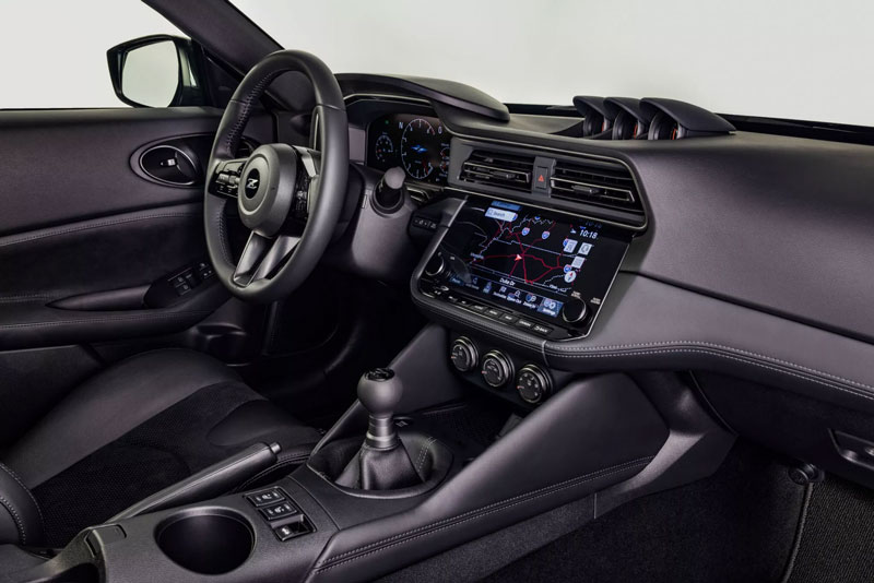 Khoang nội thất của Nissan Z Heritage Edition vẫn giữ lại phong cách quen thuộc nhưng có thêm những chi tiết tinh chỉnh để tạo dấu ấn riêng như bệ bước chân và thảm sàn độc quyền.