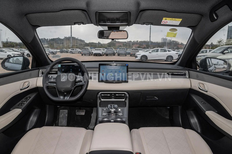 Bên trong cabin, BYD Qin Plus DM-i giữ nguyên thiết kế vô lăng chữ D và màn hình điều khiển trung tâm nổi. Bảng điều khiển được tinh chỉnh tối giản hơn với các cửa gió điều hòa hai bên mang phong cách thanh thoát. Các nút bấm vật lý vẫn được bố trí quanh cần số, đảm bảo sự tiện lợi khi sử dụng.