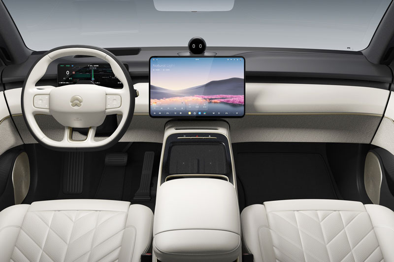 Nội thất của ET5 mới thực sự là một "cuộc cách mạng". Màn hình dọc trung tâm quen thuộc nay đã được thay thế bằng màn hình AMOLED ngang 15,6 inch thân thiện với người dùng hơn, đi kèm màn hình LCD kỹ thuật số 10,2 inch cho bảng đồng hồ sau vô-lăng. Đáng chú ý là hệ thống hiển thị trên kính lái HUD kích thước 18,8 inch cho phép hiển thị đa dạng thông tin như bản đồ, tốc độ, camera 360 độ… Một điểm cộng công nghệ khác là gương chiếu hậu tích hợp màn hình hiển thị từ camera 8MP, nâng cao trải nghiệm quan sát.