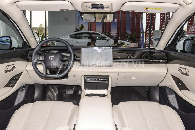 Bên trong khoang lái, BYD Qin L EV mang đến sự sang trọng với hai tùy chọn màu nội thất là Haoyue Rice và Xuankong Gray. Các phiên bản cao cấp nhất được trang bị cụm đồng hồ kỹ thuật số 8,8 inch, màn hình hiển thị trên kính lái W-HUD 12 inch và màn hình giải trí trung tâm cảm ứng nổi 15,6 inch. Ngoài ra, xe còn có sạc không dây 50W đảm bảo sự tiện lợi tối đa cho người dùng.