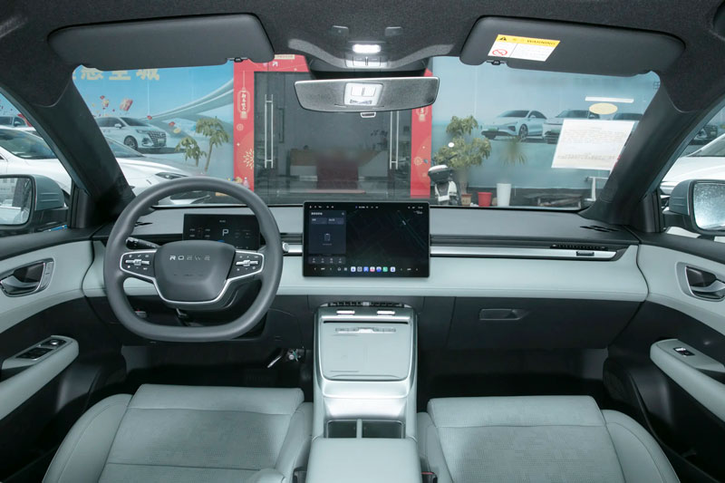 Không gian nội thất của Roewe D6 tiếp tục là điểm cộng lớn với màn hình trung tâm cảm ứng 12,8 inch, đi kèm cụm đồng hồ kỹ thuật số full LCD cho cảm giác công nghệ tràn ngập. Vô lăng hai chấu đáy phẳng thể thao được tích hợp các nút điều khiển cảm ứng hai bên. Khu vực bảng điều khiển trung tâm được bố trí hợp lý với một dãy phím bấm vật lý tiện dụng, hỗ trợ thao tác nhanh chóng các chức năng cơ bản. Đi kèm là đế sạc không dây cho điện thoại thông minh, quá hợp với lối sống bận rộn và năng động hiện nay.