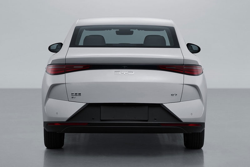 Về ngoại hình, BYD e7 sở hữu thiết kế khá tối giản nhưng vẫn để lại dấu ấn riêng nhờ phần đầu xe khép kín tạo hiệu ứng “mặt cười” lạ mắt, đi cùng logo BYD đặt chính giữa và những đường gân nổi kéo dài từ nắp capo, tạo nên vẻ hiện đại. Phía sau xe được thiết kế nhiều lớp, nổi bật với cụm đèn hậu dạng xuyên suốt, thêm một dải đèn phụ bên dưới và phần đuôi gợi liên tưởng đến kiểu "đuôi vịt" thể thao. Dù vậy, tay nắm cửa vẫn theo kiểu truyền thống – một chi tiết nhỏ cho thấy đây là mẫu xe điện thuộc phân khúc giá rẻ.
