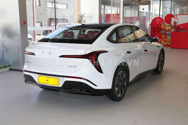 Từ phía sau, Tiangong 05 tạo cảm giác thể thao với cụm đèn hậu LED hình chữ Y, tay nắm cửa thu gọn và bộ mâm 18 inch tiêu chuẩn. Xe có kích thước tổng thể 4.820 x 1.915 x 1.480 mm, chiều dài cơ sở 2.900 mm và hệ số cản gió chỉ 0,213 Cd giúp cải thiện hiệu suất vận hành.