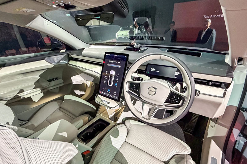Khoang nội thất của ES90 thể hiện rõ triết lý Scandinavian Luxury đặc trưng của Volvo với ghế ngồi bọc da Nappa cao cấp có chức năng sưởi, thông gió và massage cho cả hàng ghế trước và sau. Hàng ghế sau có thể ngả điện, đi kèm tựa tay trung tâm cỡ lớn, trong khi cột lái chỉnh điện, đèn viền nội thất, và cửa sổ trời điện tử mang lại cảm giác sang trọng đẳng cấp. Đặc biệt, cửa sổ trời có thể chuyển từ trong suốt sang mờ đục chỉ bằng một nút bấm, thay thế hoàn toàn tấm che nắng truyền thống.