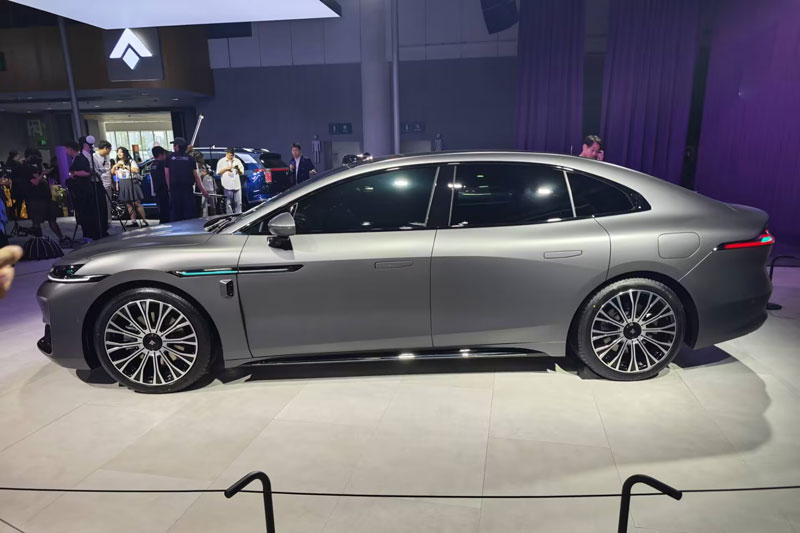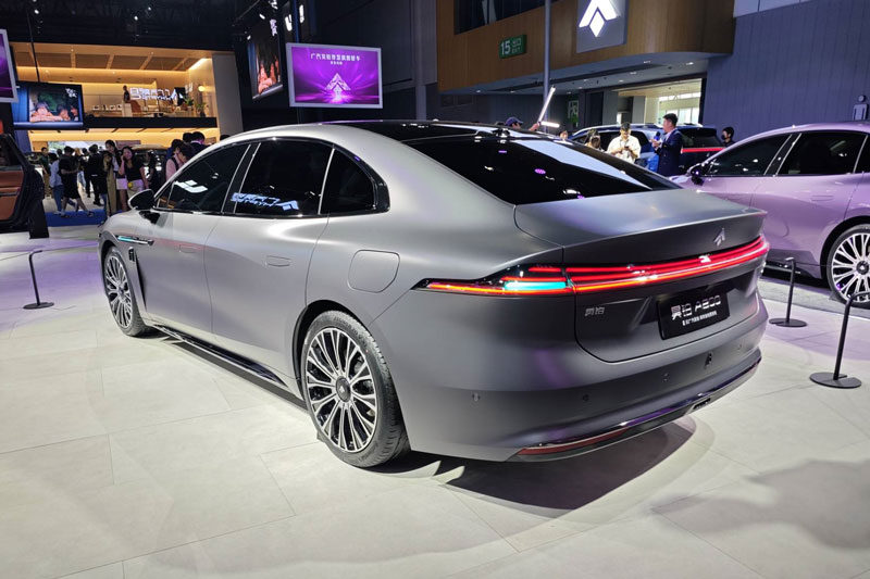 Di chuyển ra phía sau, cụm đèn hậu được thiết kế với ba dải sáng song song cùng logo “A800” kết hợp logo Huawei ADS, tạo nên diện mạo sang trọng và khác biệt. GAC Hyptec A800 EREV 2026 dài 5.130 mm, rộng 1.966 mm, cao 1.500 mm, chiều dài cơ sở 3.020 mm.