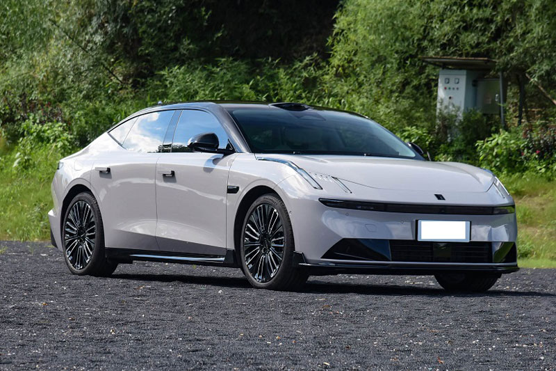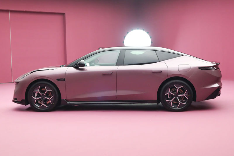 Lynk & Co 10 EM-P 2026 vẫn giữ triết lý thiết kế mang đậm phong cách gia đình với dáng fastback hiện đại, cửa không khung và tay nắm cửa ẩn tăng tính khí động học. Sedan này có 6 tùy chọn màu sắc ngoại thất gồm đen midnight, xám fluid, tím glazed, trắng dawn, be sky cloud và vàng glazed.