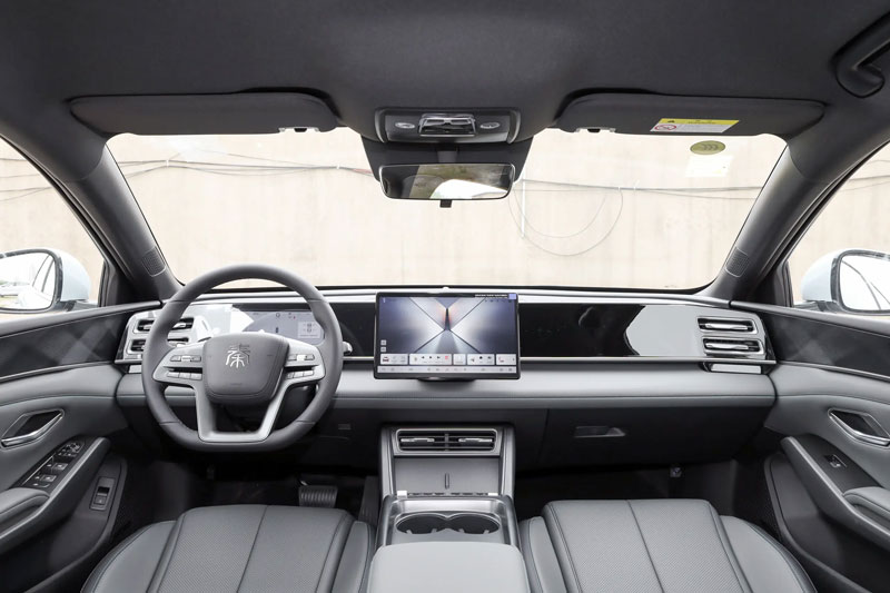 Khoang nội thất của BYD Qin L DM-i 2026 được thiết kế lại theo hướng tối giản và tiện dụng hơn. Cần số truyền thống được thay thế bằng dạng cột, giúp bảng điều khiển trung tâm gọn gàng hơn và tăng không gian cho người lái.