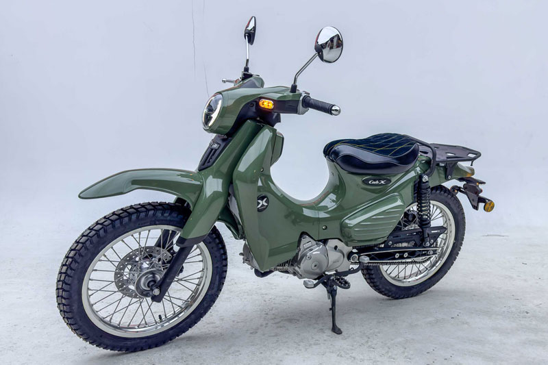Ngoài ra, thay vì sử dụng mâm hợp kim đúc như phiên bản Super Pro, Kamax Cub X được trang bị bánh nan hoa, mang lại cảm giác cổ điển và tăng độ bền khi di chuyển trên nhiều dạng địa hình khác nhau.