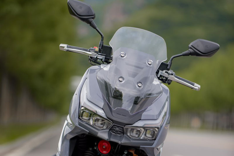 Ngay từ cái nhìn đầu tiên, Dayang VRC150 2025 gây ấn tượng mạnh nhờ thiết kế theo phong cách xe ADV - thể thao, hiện đại nhưng vẫn giữ được nét gọn gàng. Cụm đèn pha bốn thấu kính kết hợp cùng đèn chạy ban ngày và đèn báo rẽ tạo nên tổng thể mặt trước cực kỳ “ăn tiền”, vừa cá tính vừa thời trang. Thiết kế sàn để chân dạng phẳng không chỉ mang đến cảm giác rộng rãi mà còn tiện lợi khi cần chở thêm đồ.