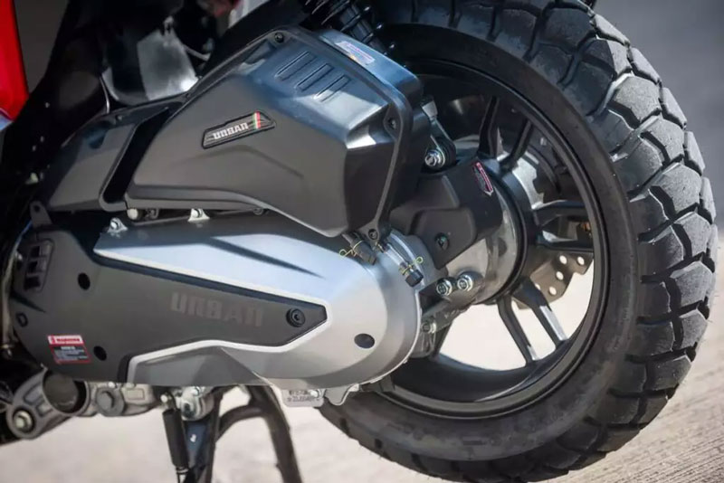 Dưới yên xe là khối động cơ 149cc, công suất 12,9 mã lực tại 8.500 vòng/phút và mô-men xoắn 13 Nm tại 6.500 vòng/phút – mạnh hơn cả Air Blade 160. Đi kèm là hộp số tự động CVT, giúp xe đạt vận tốc tối đa 114 km/h. Urban 150 EFI còn “ăn điểm” khi trang bị tính năng tự động ngắt động cơ khi dừng và khởi động lại mượt mà khi tăng ga, góp phần tiết kiệm nhiên liệu và bảo vệ môi trường – tính năng thường chỉ thấy ở các dòng xe cao cấp.