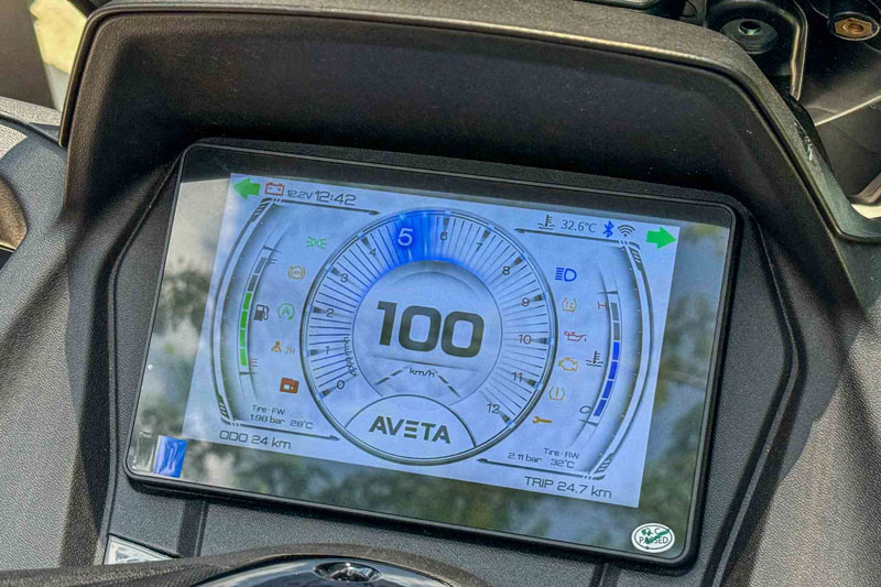 Không chỉ mạnh mẽ, Aveta Nova 250 còn được trang bị hàng loạt tiện nghi hiện đại như hệ thống chìa khóa thông minh Smart Key, giám sát áp suất lốp (TPMS), cổng sạc USB-C, và camera hành trình trước hỗ trợ ghi hình trong quá trình di chuyển. Cụm đồng hồ TFT-LCD kỹ thuật số hiển thị rõ ràng các thông tin tốc độ, quãng đường, nhiên liệu và hành trình.