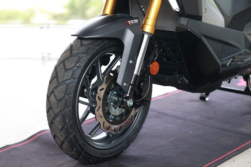 SYM ADX TG 400 được trang bị đầy đủ ABS trước và sau, hệ thống kiểm soát lực kéo (TCS - Traction Control System) giúp tăng độ an toàn khi di chuyển trên nhiều loại địa hình khác nhau. Cụm đồng hồ là màn hình TFT hiển thị sắc nét, cung cấp đầy đủ thông tin quan trọng một cách rõ ràng và dễ nhìn.