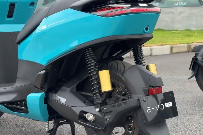 Về khung gầm và hệ thống treo, Honda E-Vo GT trang bị giảm xóc trước dạng ống lồng và giảm xóc đôi phía sau có bình dầu phụ, kết hợp phanh đĩa trước - sau với kẹp phanh piston đôi và đơn. Xe được trang bị ABS hai kênh và hệ thống kiểm soát lực kéo (TCS), mang lại khả năng vận hành ổn định và an toàn tương đương những mẫu xe tay ga xăng 150cc.