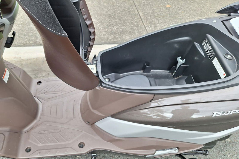 Cụm đồng hồ là màn hình LCD full kỹ thuật số là điểm cộng lớn, hiển thị đầy đủ mọi thông tin cần thiết, dễ quan sát và sử dụng. Burgman 125 2025 còn được trang bị hàng loạt tiện ích thực dụng mà dân thành thị cực kỳ cần như hộc để đồ trước có nắp đậy, cổng USB để sạc điện thoại mọi lúc mọi nơi, cốp dưới yên xe rộng tới 21 lít giúp người dùng có thể chứa được mũ bảo hiểm cùng một số vật dụng khác.