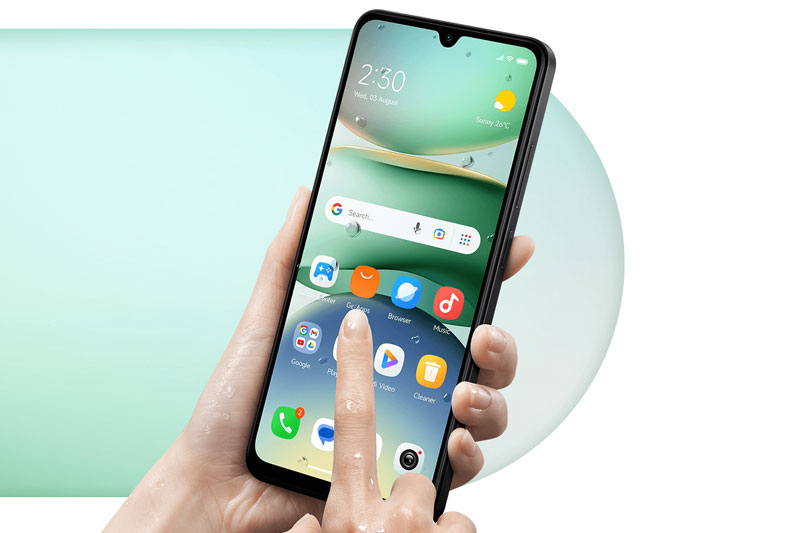Xiaomi Redmi A5 được trang bị màn hình LCD HD+ 6,88 inch với tốc độ làm mới lên đến 120Hz, mang lại trải nghiệm vuốt chạm mượt mà hơn trong tầm giá. Màn hình này có thể thao tác khi bị ướt. Camera trước 8MP được đặt trong phần khuyết giúp tối ưu diện tích hiển thị.