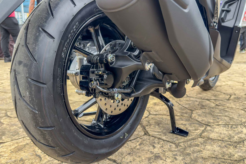 Cả hai phiên bản đều dùng phanh đĩa thủy lực đơn ở cả bánh trước và sau, đi kèm ABS đơn kênh. Hệ thống treo bao gồm phuộc ống lồng phía trước và giảm xóc đôi phía sau, kết hợp cùng bộ mâm 14 inch với lốp trước 110/80 và lốp sau 140/70 mang lại độ cân bằng và bám đường tốt.